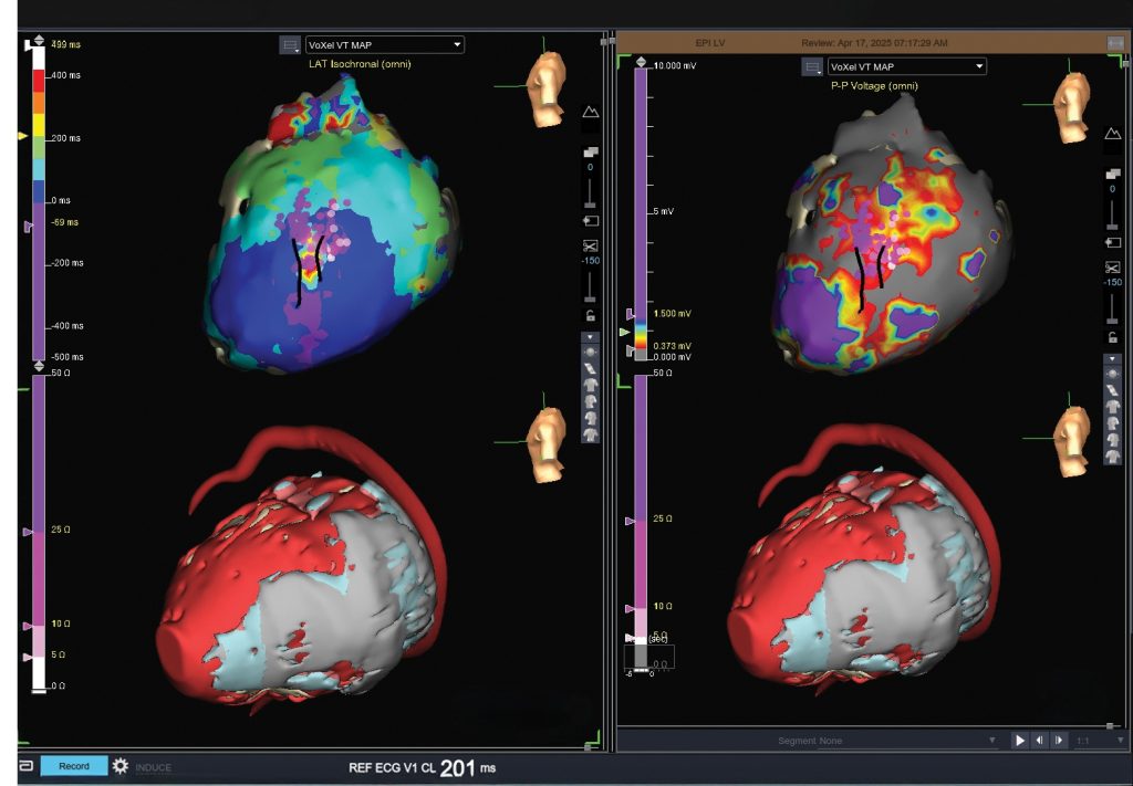 - Ventricular tachycardia (VT) ablation: Volumes for this highly specialized treatment continue to grow across the enterprise at the Plano and Dallas locations. Traditional VT ablation targets the endocardial surface. However, some arrhythmias originate from the epicardium, requiring the use of a subxiphoid puncture to enter a virtual, motion-filled space without damaging the heart or surrounding structures. For specific diseases, performing an epicardial ablation can lead to a long-term arrhythmia-free outcome when otherwise standard approaches fail.